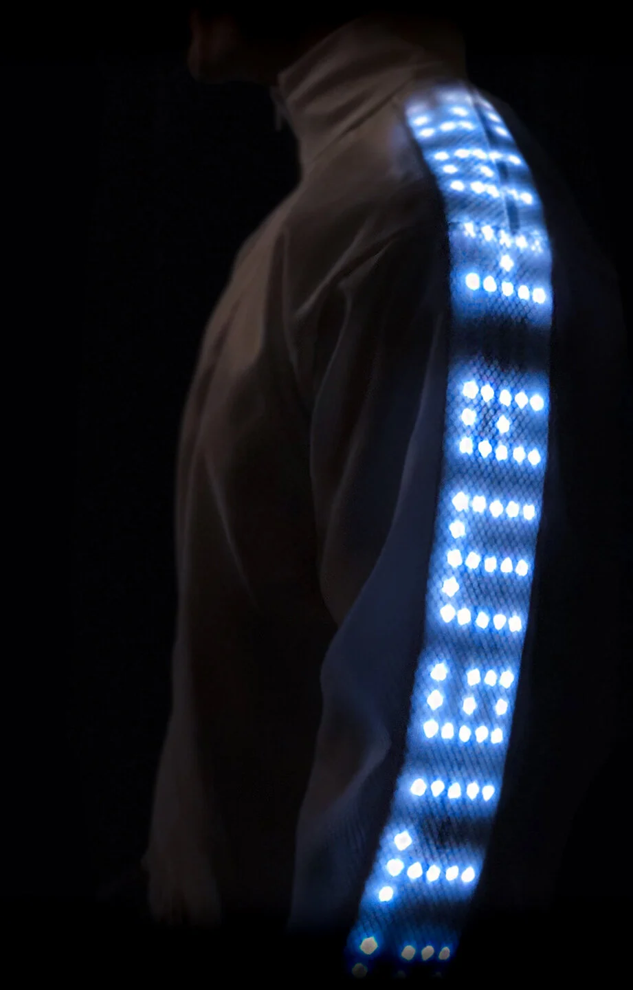 Designed and programmed ‘Transparency’ tracksuit incorporating LED displays concealed within semi-transparent textiles